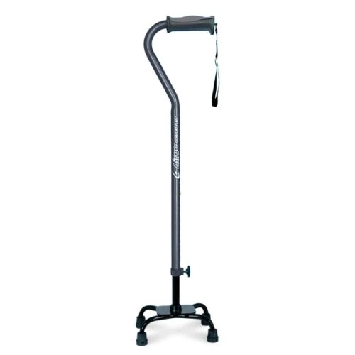 The Airgo Comfort Plus Offset Cane with Quad Base is a high quality aluminium walking stick with an offset handle and a quad base for additional stability.