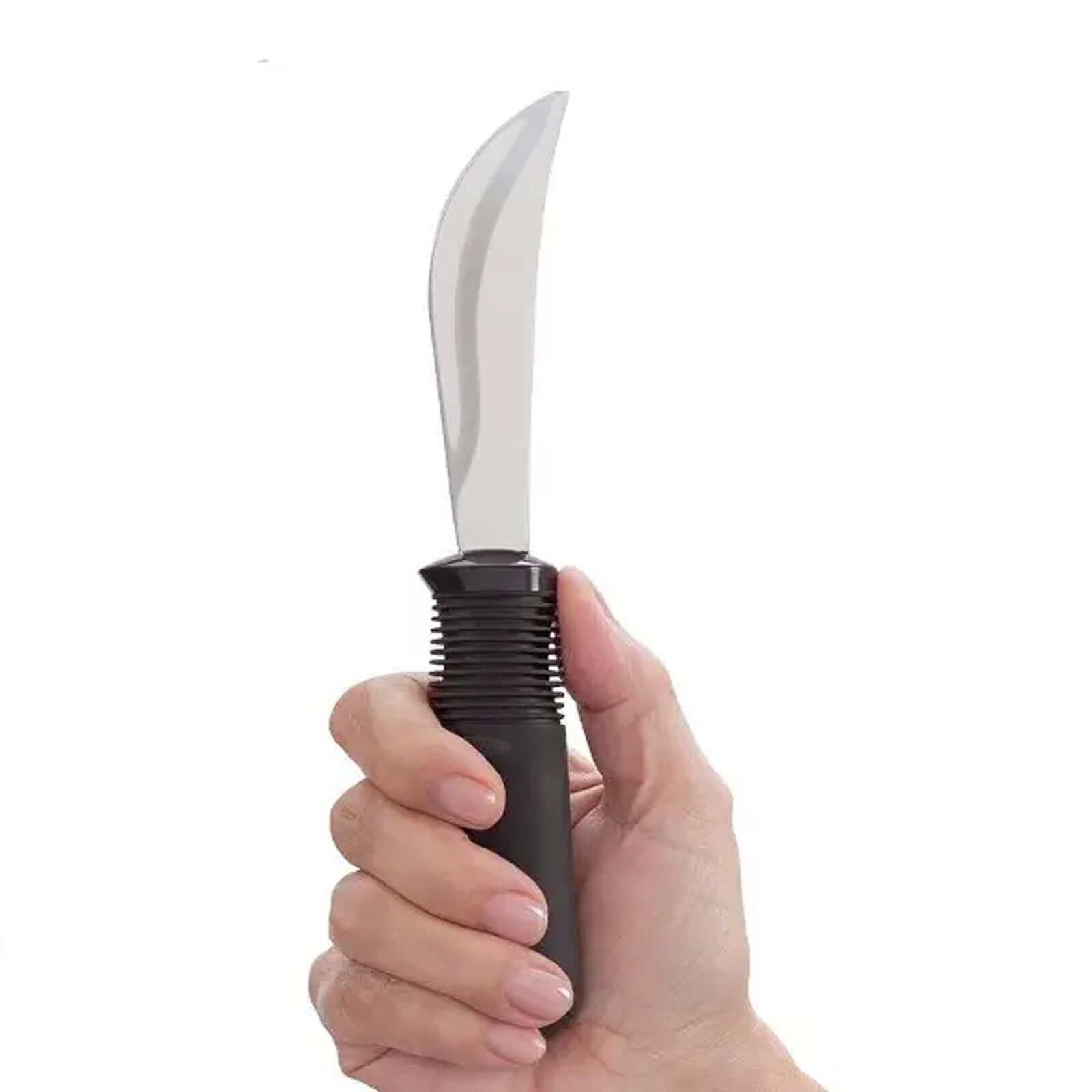 • The large textured rubber handle is helpful for persons with a weak grasp or limited hand coordination