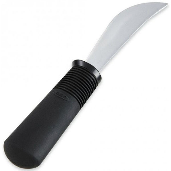 The Big-Grip Rocker Knife has a wide slip-resistant handle and a curved blade. Food is cut using a rocking action. It is ideal for those with a limited range of movement or the use of only one hand.