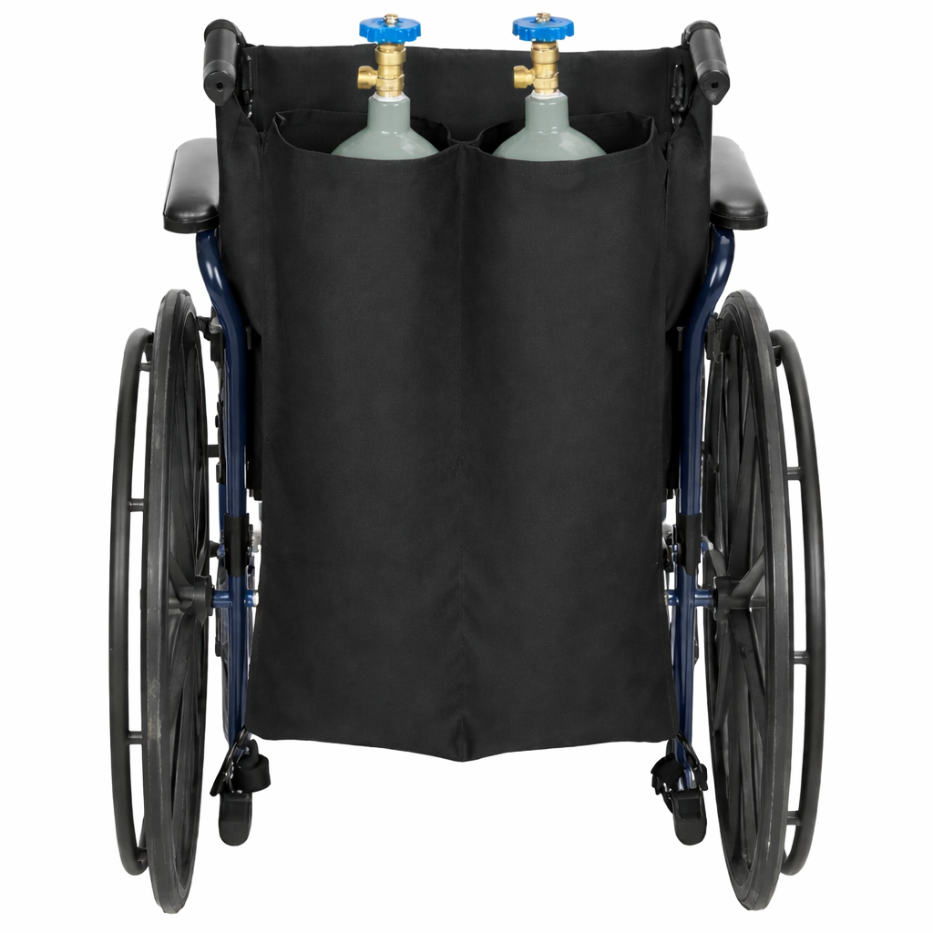 Cylinder Holder is designed for wheelchairs and features adjustable straps to accommodate wheelchairs with widths ranging from 40cm to 60cm.