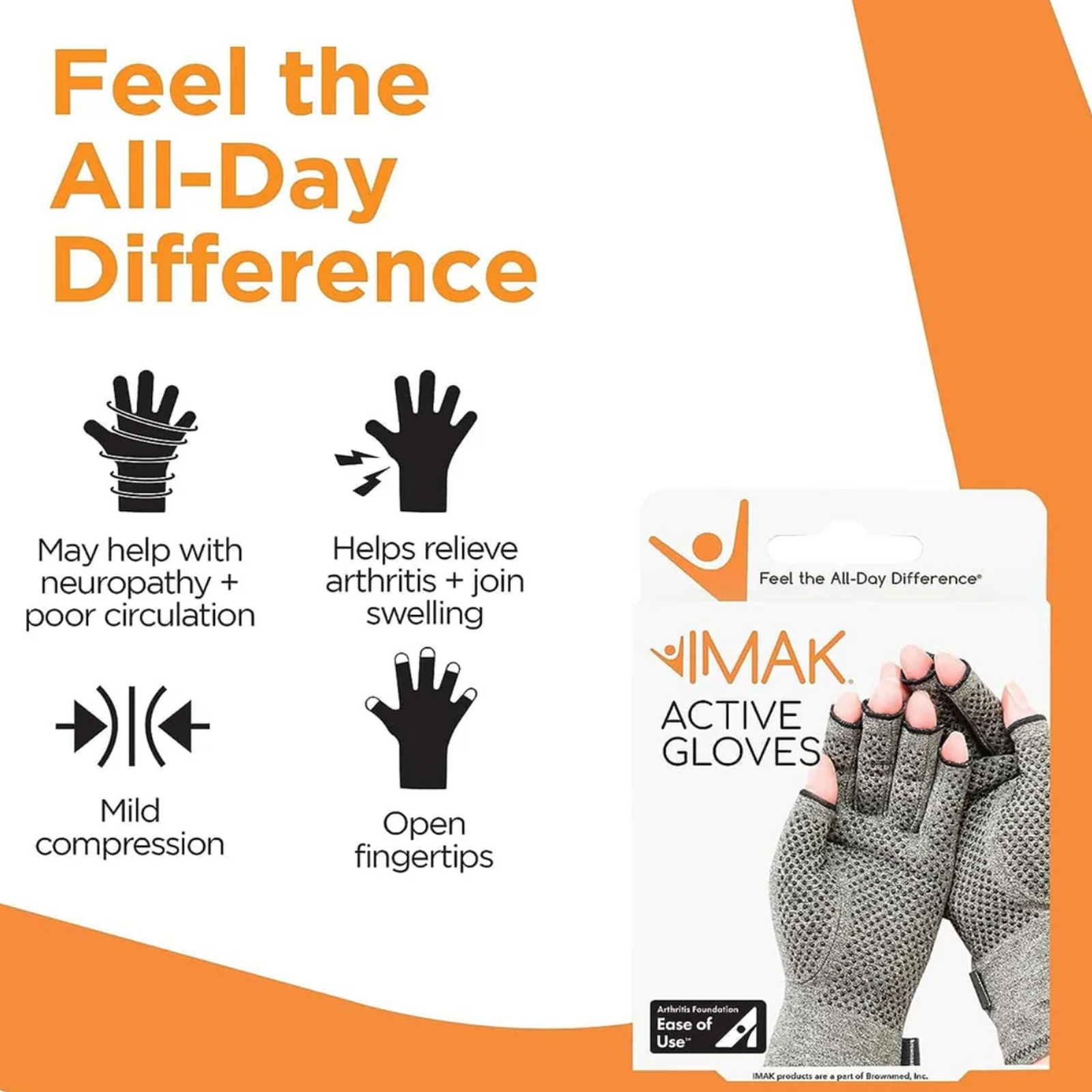 The IMAK Compression Active Gloves A2018 are great for those who find playing certain sports or performing everyday activities difficult due to aches, pains, and stiffness in the hands, often due to arthritis. These gloves were designed by an orthopaedic surgeon for arthritis sufferers. The purpose was to design gloves that combined pain relief and support with usability. The Arthritis Foundation in the United States awarded this product its Ease of Use Commendation.