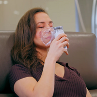 - Place the mouthpiece in your mouth or the mask over your nose and mouth.