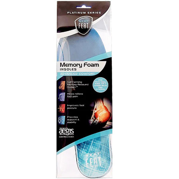 Neat Feat Memory Foam Insoles - Imagine walking on a cloud, all day every day? With the Neat Feat Advanced Memory Foam Insole, there’s no need to imagine. Memory rebound system technology fashions itself around your unique foot shape, meaning more support and comfort all day long.