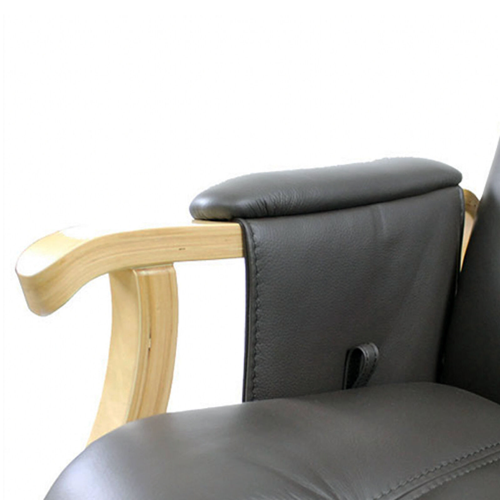The Oscar Howard Easy Chair with Footrest has a fashionable Scandinavian design and is built to be comfortable, practical, and durable. It features a slim line manual recline mechanism with wall saver and includes a matching footrest. The recline action is activated by pulling a fabric loop to unlock and then pushing back to recline.