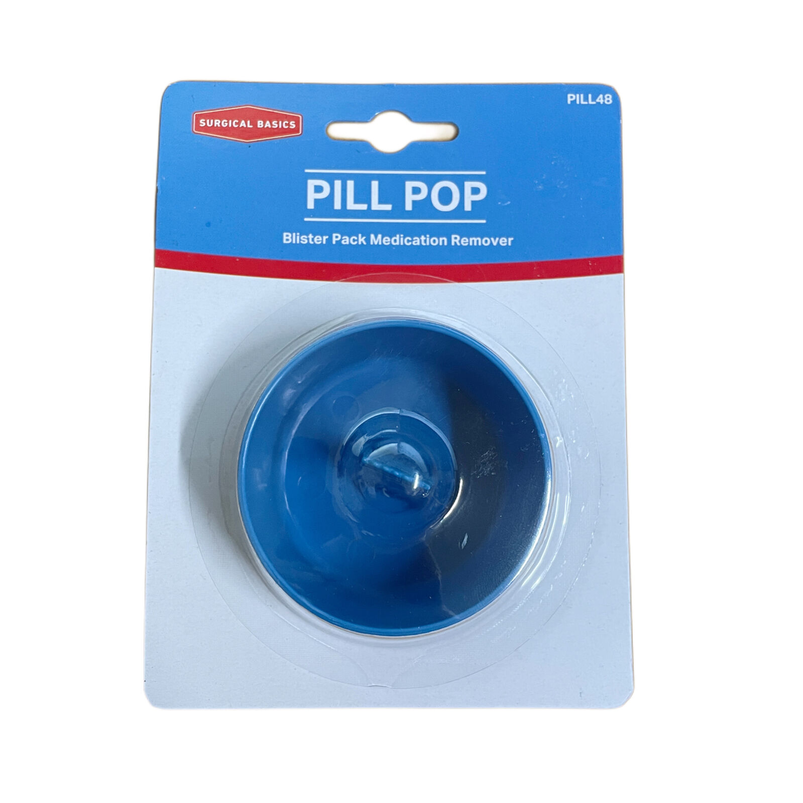 • Simply hold the Blister Pack flat, inserting the prong of the pill pop through the foil into the desired blister, moving it until the medication has fallen into the pill pop.