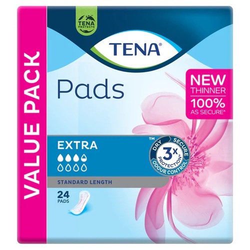 TENA Pads Extra Standard Length is specifically designed for women with a close body fit for added security and comfort. This incontinence pad is ideal for light to moderate bladder leaks so you can feel confident with the security you need and the discretion you want.