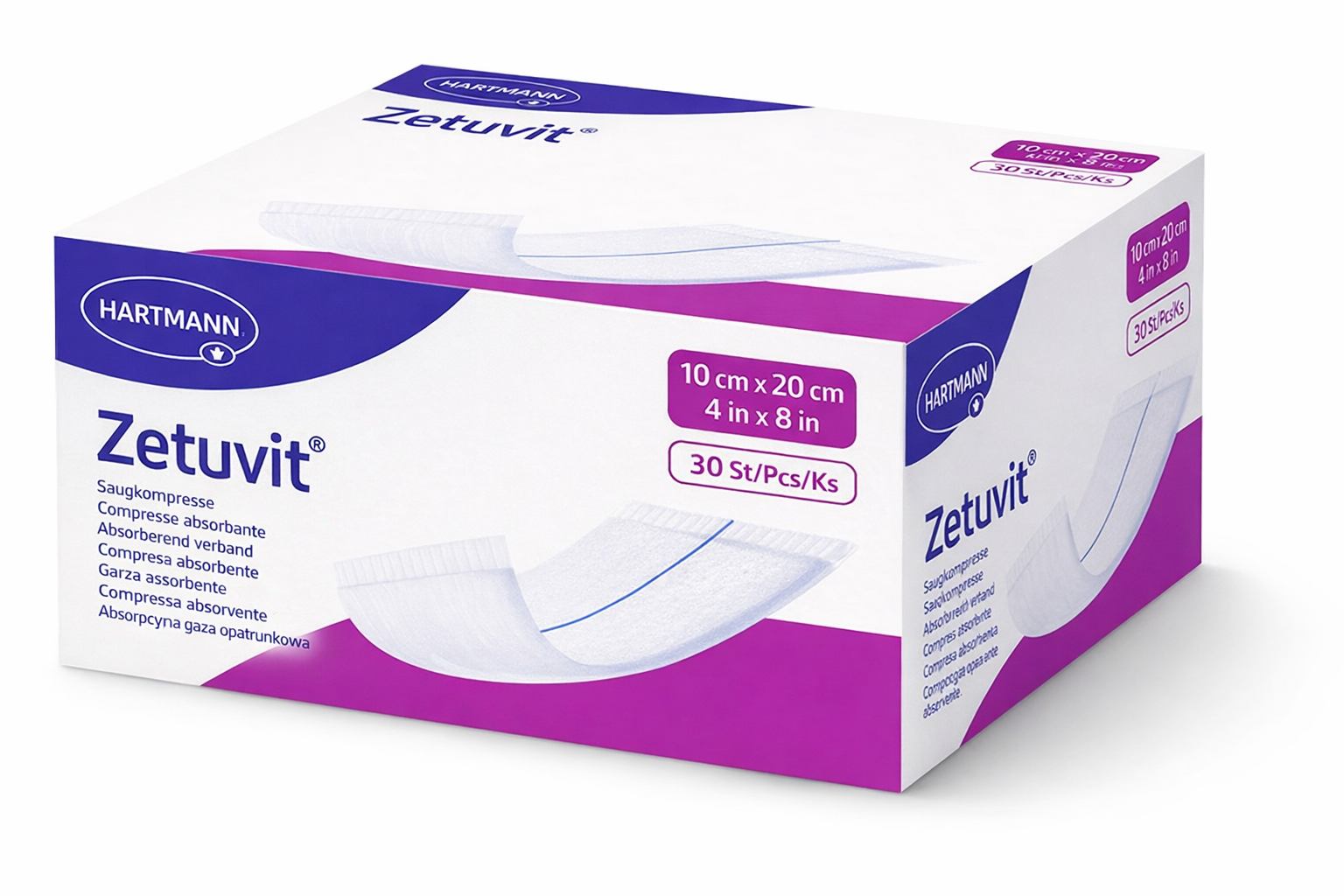 Zetuvit non-sterile is a single use absorbent pad used for mechanical protection (padding or cushioning of wounds), as a mechanical barrier (protection against external contamination) and for absorption of body fluids (exudate, blood or pus). It is available in different sizes.